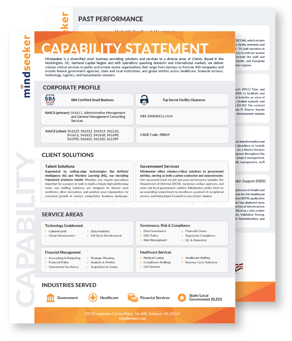 Mindseeker holds a GSA 8(a) STARS III contract through our Joint Venture (JV) Starland Technologies, LLC.